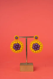 Yellow And Purple Pearl Beaded Handcrafted Earings