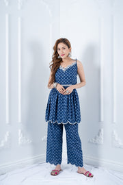 Dark Blue Printed Mirror Work Kurta Set - XS
