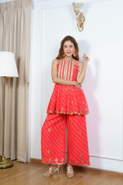 Red Leheriya Print Flap Kurta with Pant - XS / Orange