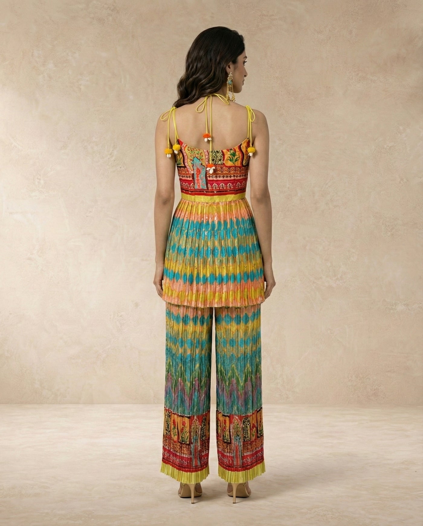 Delicate shoulder tie-ups with playful tassel accents add a hint of whimsy, while the finely pleated detailing enhances movement and grace. Effortlessly chic yet supremely comfortable, SAFI is perfect for festive afternoons, destination getaways, art-inspired gatherings, or days when you want your outfit to do the talking.